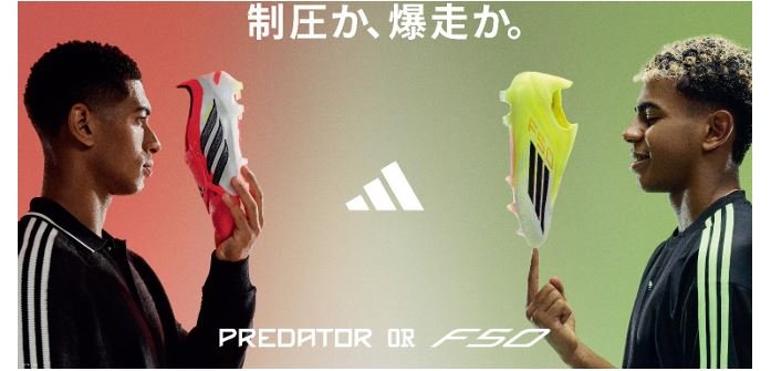 アディダス ジャパン株式会社(本社:東京都港区、代表取締役:萩尾 孝平)は、2026年1月8日(木)18:00より、PREDATOR の新モデルを発売いたします。今回の発売に合わせて、全く異なる特徴やスタイルを持つPREDATORとF50を「制圧か、爆走か。」というアプローチを通してサッカープレイヤーに選択を迫ります。 軽量性とコントロール性が向上したPREDATORとスピードに特化し、さらなる進化を遂げたF50を対峙させることにより、コントロールとスピードを際立たせる取り組みとなります。